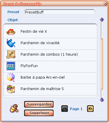 Ce système vous permet de configurer jusqu'à 10 pages, chacune contenant 32 consommables présents dans votre inventaire.